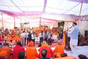 इस अवसर जूना अखाड़ा के महामंत्री हरिगिरी महाराज ने कहा कि मुख्यमंत्री श्री पुष्कर सिंह धामी के नेतृत्व में प्रदेश प्रगति के पथ पर अग्रसर हो रहा है तथा उन्होंने कई ऐतिहासिक महत्वपूर्ण निर्णय लिये हैं जो अन्य प्रदेशों के लिए भी उदाहरण बने हुए हैं। उन्होंने कहा कि ताकत उसी के हाथ में अच्छी लगती है जो निर्भिक निडर एवं सहास के साथ आगे बढ़ते हुए देश एवं समाज की आन बान शान को कायम रखने में समर्थ हो। उन्होंने कहा कि उत्तराखण्ड देश का पहला राज्य है जहां समान नागरिकता संहिता कानून लागू करने के साथ ही भू कानून भी लागू किया गया है जिससे प्रदेश की भूमि सुरक्षित हुई है। निरंजनी आखाड़ा के पीठाधीश्वर कैलाशानंद गिरी महाराज ने कहा कि प्रदेश के मुख्यमंत्री संतो का आदर करते हुए सनातन के लिए कार्य कर रहे है। कार्यक्रम का संचालन अखाडा परिषद के अध्यक्ष रविन्द्र पुरी महाराज द्वारा किया गया।