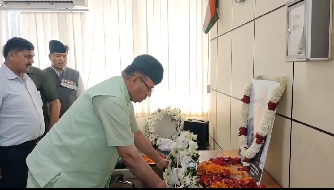 श्रद्धांजलि देते सैनिक कल्याण मंत्री गणेश जोशी