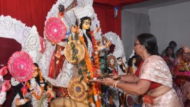 सिंदूर खेला के साथ मां दुर्गा को विदाई, विजयादशमी पर जलवायु टावर्स झाझरा में उमड़ा भक्तों का सैलाब